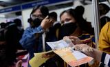 Warga mengantre untuk mencari informasi lowongan pekerjaan saat Jakarta Job Fair di kawasan Blok M, Jakarta, Rabu (27/7/2022). Suku Dinas Tenaga Kerja, Transmigrasi dan Energi di lima wilayah Kota Administrasi menyelenggarakan pameran bursa kerja pada 27 Juli hingga 11 Agustus 2022. Kegiatan yang diikuti lebih dari 200 perusahaan itu menyediakan sekitar 20.000 lowongan pekerjaan. Republika/Putra M. Akbar (FOTO : Republika/Putra M. Akbar)