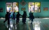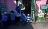 Anak-anak masuk kelas di TK ABA Kauman, Yogyakarta, Rabu (27/7/2022). TK Aisyiyah Bustanul Athfal (ABA) Kauman merupakan pendidikan usia dini pertama di Indonesia. Sekolah ini dirintis pada 1919 oleh Nyi Ahmad Dahlan. TK ABA berjumlah lebih dari 20 ribu sekolah yang tersebar di 34 provinsi dan 1 di Mesir. Saat ini sekolah ini memiliki empat kelas dengan jumlah murid sekitar 60 anak. (FOTO : Wihdan Hidayat / Republika)