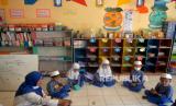 Anak-anak belajar di TK ABA Kauman, Yogyakarta, Rabu (27/7/2022). TK Aisyiyah Bustanul Athfal (ABA) Kauman merupakan pendidikan usia dini pertama di Indonesia. Sekolah ini dirintis pada 1919 oleh Nyi Ahmad Dahlan. TK ABA berjumlah lebih dari 20 ribu sekolah yang tersebar di 34 provinsi dan 1 di Mesir. Saat ini sekolah ini memiliki empat kelas dengan jumlah murid sekitar 60 anak. (FOTO : Wihdan Hidayat / Republika)