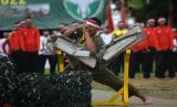 REPUBLIKA.CO.ID, BANDA ACEH -- Prajurit TNI Kodam Iskandar Muda melakukan atraksi memecahkan balok beton seusai mengikuti upacara Penutupan Pendidikan Pembentukan Bintara TNI AD tahun anggaran 2022 di Banda Aceh, Aceh, Rabu (27/7/2022). Sebanyak 327 prajurit yang telah selesai menjalani pendidikan bintara tersebut akan ditempatkan di kesatuannya masing masing di Provinsi Aceh dan di provinsi lain.