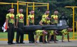 Prajurit TNI Kodam Iskandar Muda melakukan atraksi push up dengan beban ban mobil bekas seusai mengikuti upacara Penutupan Pendidikan Pembentukan Bintara TNI AD tahun anggaran 2022 di Banda Aceh, Aceh, Rabu (27/7/2022). Sebanyak 327 prajurit yang telah selesai menjalani pendidikan bintara tersebut akan ditempatkan di kesatuannya masing masing di Provinsi Aceh dan di provinsi lain. (FOTO : ANTARA/AMPELSA)