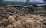 REPUBLIKA.CO.ID, SIGI -- Pekerja mengupas sabut dari buah kelapa di salah satu pengepul kelapa di Desa Pewunu, Sigi, Sulawesi Tengah, Kamis (28/7/2022). Sebagian besar buah kelapa dan kopra yang dihasilkan di wilayah tersebut dipasarkan ke China.