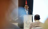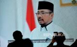 Menteri Agama Yaqut Cholil Qoumas (dalam layar monito) memberikan sambutan saat kegiatan Kongres Umat Islam untuk Indonesia Lestari di Aula Al-Fatah Masjid Istiqlal, Jakarta, Kamis (28/7/2022). Kongres tersebut diikuti oleh sejumlah organisasi keagamaan, Universitas dan Republika dengan tujuan menggagas peran umat islam dalam penanganan perubahan iklim di tengah situasi krisis iklim. (FOTO : Republika/Thoudy Badai)