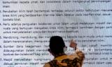 Fasilitator memimpin jalannya sidang saat Kongres Umat Islam untuk Indonesia Lestari di Aula Al-Fatah Masjid Istiqlal, Jakarta, Kamis (28/7/2022). Kongres tersebut diikuti oleh sejumlah organisasi keagamaan, Universitas dan Republika dengan tujuan menggagas peran umat islam dalam penanganan perubahan iklim di tengah situasi krisis iklim. (FOTO : Republika/Thoudy Badai)