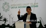 Direktur Utama Istiqlal Global Fund (IGF) Mulyono Lodgi menyampaikan sambutan saat kegiatan Kongres Umat Islam untuk Indonesia Lestari di Aula Al-Fatah Masjid Istiqlal, Jakarta, Kamis (28/7/2022). Kongres tersebut diikuti oleh sejumlah organisasi keagamaan, Universitas dan Republika dengan tujuan menggagas peran umat islam dalam penanganan perubahan iklim di tengah situasi krisis iklim. (FOTO : Republika/Thoudy Badai)