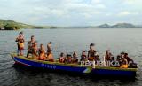 Sejumlah penari dari Kampung Ayapo tampil di atas perahu dalam acara pembukaan Pagelaran Budaya Nusantara di Pantai Khalkote, Distrik Sentani Timur, Kabupaten Jayapura, Papua, Kamis (28/7/2022). Sejumlah penari dari Kampung Ayapo membawakan Tari Akhokoy di Festival Nusantara, Tari Akhokoy yang berasal dari Kampung Adat Yokiwa di tepi Danau Sentani tersebut memiliki makna mengangkat kebesaran sosok Ondoafi atau Sang Kepala Adat yang dihormati rakyatnya dan mencerminkan kerukunan tiga suku penghuni Yokiwa, antara lain Suku Awoitauw, Suku Fiobetauw, serta Suku Mimitauw.  (FOTO : ANTARA/Gusti Tanati)