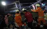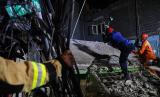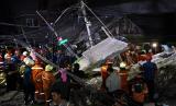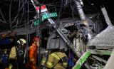 Tim SAR gabungan mencoba membongkar puing-puing bangunan yang roboh di Johar Baru, Jakarta Pusat, Kamis (28/7/2022). Kejadian tersebut mengakibatkan 1 orang meninggal dunia dan 2 orang luka-luka. (FOTO : ANTARA/Sigid Kurniawan)