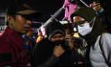 Warga menangis saat mencari keluarganya di sekitar lokasi bangunan yang roboh di Johar Baru, Jakarta Pusat, Kamis (28/7/2022). Kejadian tersebut mengakibatkan 1 orang meninggal dunia dan 2 orang luka-luka. (FOTO : ANTARA/Sigid Kurniawan)