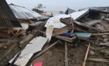 Warga mengumpulkan sisa barang mereka dari puing rumah yang hancur akibat diterjang banjir bandang di Desa Torue, Kabupaten Parigi Moutong, Sulawesi Tengah, Jumat (29/7/2022). Warga berupaya menyelamatkan sisa harta benda mereka usai banjir bandang yang terjadi pada Kamis (28/7/2022) malam yang mengakibatkan tiga orang meninggal dunia, empat orang dinyatakan hilang dan masih dalam pencarian, serta puluhan rumah warga rusak. (FOTO : ANTARA/Mohamad Hamzah)