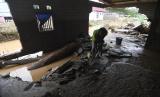 Warga membersihkan material dari dalam rumahnya yang rusak akibat diterjang banjir bandang di Desa Torue, Kabupaten Parigi Moutong, Sulawesi Tengah, Jumat (29/7/2022). Banjir bandang yang terjadi pada Kamis (28/7/2022) malam tersebut mengakibatkan tiga orang meninggal dunia, empat orang dinyatakan hilang dan masih dalam pencarian, serta puluhan rumah warga rusak. (FOTO : ANTARA/Mohamad Hamzah)