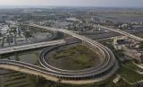 Foto udara Jalan Tol Cibitung-Cilincing (JTCC) seksi 3 di Tarumajaya, Kabupaten Bekasi, Jawa Barat, Jumat (29/7/2022). JTCC Seksi 2 dan 3 segmen Telaga Asih-Gabus, Muara Bakti-Kanal Banjir Timur sepanjang 24,65 km akan beroperasi serta menjadi akses alternatif dari kawasan industri Bekasi menuju Pelabuhan Tanjung Priok.  (FOTO : ANTARA/Fakhri Hermansyah)