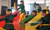 Penampilan kesenian dari ikatan keluarga pelajar dan mahasiswa (IKPM) Jawa Barat saat acara Selendang Sutra 2022 di Yogyakarta, Senin (1/8/2022). Selendang Sutra atau Semarak Legenda Suku Se-Nusantara 2022 kembali digelar secara luring. Sebanyak 34 IKPM se-Indonesia akan tampil menunjukan kesenian daerahnya masing-masing. Acara gelar budaya etnis ini akan diadakan hingga 4 Agustus mendatang. (FOTO : Wihdan Hidayat / Republika)