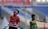 Ekspresi pelari Indonesia Firza Faturahman Listianto seusai melintasi garis finish pada babak final lari 100 meter putra klasifikasi T46 Asean Paragames 2022 di Stadion Manahan, Solo, Jawa Tengah, Senin (1/8/2022). Firza berhasil meraih medali emas di nomor lari 100 meter putra T46 dan medali perak diraih oleh Phung Dinh Tu dari Vietnam. Lalu, wakil lain dari Vietnam, Pham Xuan Huy, mendapat medali perunggu. (FOTO : Republika/Thoudy Badai)