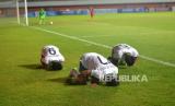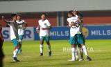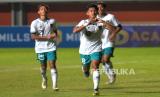 Selebrasi pemain Timnas Indonesia U16 usai membobol gawang Timnas Singapura U16 pada pertandingan lanjutan penyisihan grup A AFF U16 Putra 2022 di Stadion Maguwoharjo, Sleman, Yogyakarta, Rabu (3/8/2022). Pada pertandingan ini Timnas Indonesia U16 berhasil pecundangi Timnas Singapura U16 dengan skor 9-0. (FOTO : Republika/Wihdan Hidayat)