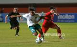 Penyerang Timnas Indonesia U16 Waliy Marifat melewati bek Timnas Singapura U16 Heng Wei Xian pada pertandingan lanjutan penyisihan grup A AFF U16 Putra 2022 di Stadion Maguwoharjo, Sleman, Yogyakarta, Rabu (3/8/2022). Pada pertandingan ini Timnas Indonesia U16 berhasil pecundangi Timnas Singapura U16 dengan skor 9-0. (FOTO : Republika/Wihdan Hidayat)