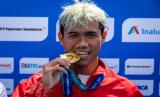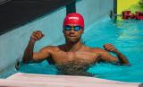REPUBLIKA.CO.ID,SEMARANG -- Perenang Indonesia Jendi Panggabean melakukan selebrasi usai bertanding pada final gaya kupu-kupu 100 meter putra kategori S9 ASEAN Para Games 2022 di Stadion Jatidiri Semarang, Jawa Tengah, Rabu (3/8/2022).