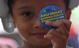 REPUBLIKA.CO.ID, JAKARTA -- Seorang anak menunjukkan pin tanda telah divaksin campak rubella dalam Bulan Imuniasi Anak Nasional (BIAN) di Ruang Publik Terpadu Ramah Anak (RPTRA) III Tanah Abang, Jakarta, Kamis (4/8/2022). Pemerintah Provinsi DKI Jakarta menargetkan sebanyak 715.782 anak berusia 9-59 bulan dapat diimunisasi saat pelaksanaan BIAN pada Agustus 2022.