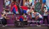 Atlet angkat berat Indonesia Purba Nurtani melakukan tos dengan pelatih usai berhasil mengangkat beban pada kelas 73 kilogram putri ASEAN Para Games 2022 di Hotel Paragon, Solo, Jawa Tengah, Kamis (4/8/2022). Purba Nurtani meraih dua medali emas dengan total angkatan 288 kilogram dan angkatan terbaik 103 kilogram. (FOTO : ANTARA/Mohammad Ayudha)