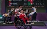 REPUBLIKA.CO.ID,SOLO -- Atlet angkat berat Indonesia Purba Nurtani mengangkat beban pada kelas 73 kilogram putri ASEAN Para Games 2022 di Hotel Paragon, Solo, Jawa Tengah, Kamis (4/8/2022).
