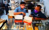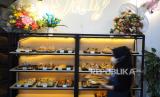 REPUBLIKA.CO.ID,PEKALONGAN -- Seorang staf menata produk roti di salah satu rak pajang Onty Cake di Pekalongan, Kamis (4/8/2022).