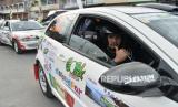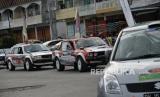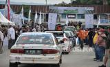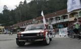 Sejumlah peserta Kejurnas Danau Toba Rally 2022 mengikuti acara pelepasan di Terminal Huta Sosor Saba, Kota Turis Parapat, Kabupaten Simalungun, Sumatera Utara, Jumat (5/8/2022). Sebanyak 46 peserta berasal dari Sumatera Utara, DKI Jakarta, Jawa Barat, Jawa Timur, Kalimantan Selatan, hingga Sulawesi Selatan mengikuti ajang Kejurnas Danau Toba Rally 2022 yang berlangsung pada 6-7 Agustus. Para pereli akan menempuh jarak total sepanjang 333,86 kilometer yang terbagi dalam 9 Special Stage (SS) di Hutan Tanaman Industri (HTI) PT Toba Pulp Lestari Tbk Sektor Aek Nauli, Kabupaten Simalungun, Sumatera Utara. (FOTO : Republika/Edwin Putranto)