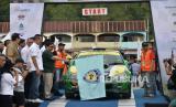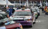 REPUBLIKA.CO.ID,SIMALUNGUN -- Sejumlah peserta Kejurnas Danau Toba Rally 2022 mengikuti acara pelepasan di Terminal Huta Sosor Saba, Kota Turis Parapat, Kabupaten Simalungun, Sumatera Utara, Jumat (5/8/2022).
