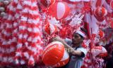 Pedagang mengaku penjualan pernak pernik HUT RI meningkat dibanding tahun lalu..