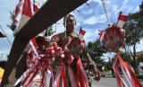 REPUBLIKA.CO.ID,PALU -- Pedagang bendera dan pernak pernik bernuansa merah putih menata jualannya di Palu, Sulawesi Tengah, Sabtu (8/6/2022).