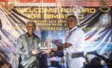 Komandan KRI Bima Suci-945 Letkol Laut (P) Muhammad Sati Lubis (kanan) menyerahkan miniatur KRI Bima Suci-945 kepada Duta Besar RI untuk Malaysia Hermono (kiri) saat menghadiri malam  (FOTO : ANTARA FOTO)