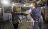 Duta Besar RI untuk Malaysia Hermono (kiri) berjalan bersama Komandan KRI Bima Suci-945 Letkol Laut (P) Muhammad Sati Lubis (kanan) saat menghadiri malam  (FOTO : ANTARA FOTO)