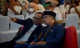Gubernur Jawa Barat Ridwan Kamil (kanan) berdiskusi dengan Wali Kota Bogor yang juga ketua Asosiasi Pemerintah Kota Seluruh Indonesia (APEKSI) Bima Arya (kiri), saat digelarnya Kolaborasi Komunitas Muda Kota di Gedung Bagindo Aziz Chan Youth Center Padang, Sumatera Barat, Ahad (7/8/2022). Ajang kolaborasi delegasi kaum muda dari 98 kota seluruh Indonesia itu digelar sebagai wadah penguatan sinergi para pemimpin kota masa depan sekaligus pemberdayaan para milenial dan gerakan bangga produk lokal.  (FOTO : ANTARA/Iggoy el Fitra)