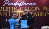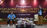 REPUBLIKA.CO.ID, JAKARTA -- Ketua Umum Partai Gelora Anis Matta hadir mendaftarkan Partai Gelora sebagai partai politik calon peserta Pemilu tahun 2024 di Kantor KPU, Jakarta, Ahad (7/8/2022).
