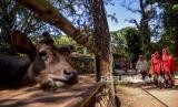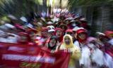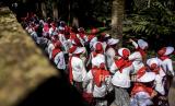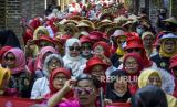Warga mengenakan kebaya mengikuti Bandung Lautan Kebaya di Bandung Zoological Garden, Kota Bandung, Senin (8/8/2022). Bandung Lautan Kebaya yang diikuti oleh sedikitnya 35 komunitas dari berbagai daerah tersebut digelar dalam rangka pelestarian kebaya sebagai warisan leluhur dan upaya mendaftarkan kebaya ke UNESCO sebagai warisan budaya tak benda asal Indonesia. Selain itu, kegiatan tersebut sebagai upaya dukungan penyelesaian atas polemik kepemilikan lahan kebun binatang bandung (Bandung Zoological Garden). (FOTO : REPUBLIKA/ABDAN SYAKURA)