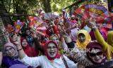 Sejumlah warga mengenakan kebaya saat Bandung Lautan Kebaya di Bandung Zoological Garden, Kota Bandung, Senin (8/8/2022). Bandung Lautan Kebaya yang diikuti oleh sedikitnya 35 komunitas dari berbagai daerah tersebut digelar dalam rangka pelestarian kebaya sebagai warisan leluhur dan upaya mendaftarkan kebaya ke UNESCO sebagai warisan budaya tak benda asal Indonesia. Selain itu, kegiatan tersebut sebagai upaya dukungan penyelesaian atas polemik kepemilikan lahan kebun binatang bandung (Bandung Zoological Garden). Republika/Abdan Syakura (FOTO : REPUBLIKA/ABDAN SYAKURA)