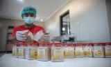 Pekerja memproduksi minuman olahan jahe merah di Cisarua, Kabupaten Bandung Barat, Jawa Barat, Senin (8/8/2022). Pengusaha minuman jahe merah tersebut menyatakan saat ini produksinya hanya sekitar 10 ribu toples per bulan atau menurun drastis dibandingkan pada awal pandemi COVID-19 yang bisa mencapai 600 ribu toples per bulan (FOTO : ANTARA FOTO/Raisan Al Farisi/wsj.)