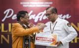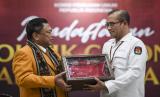 REPUBLIKA.CO.ID, Ketua Komisi Pemilihan Umum (KPU) Hasyim Asy'ari berkas administrasi Partai Hanura dari Ketua Umum Partai Hanura Oesman Sapta Odang saat Pendaftaran Partai Politik Calon Peserta Pemilu tahun 2024 di Gedung KPU, Jakarta, Senin (8/8/2022).