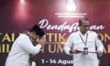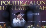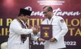 REPUBLIKA.CO.ID, JAKARTA -- Ketua Umum Partai Gerindra mendaftarkan Partai Gerindra di Gedung KPU sebagai calon peserta Pemilu 2024 di Jakarta, Senin (8/8/2022). Gerindra menjadi partai ke-17 dan PKB menjadi partai ke-18 yang mendaftar sebagai calon peserta Pemilu 2024 ke KPU.