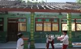 REPUBLIKA.CO.ID,NGAWI -- Sejumlah siswa bermain di depan bangunan ruang kelasnya yang rusak di SDN Karangmalang 1, Ngawi, Jawa Timur, Selasa (9/8/2022).