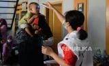 Petugas mengukur berat badan anak sebelum disuntikan vaksin campak rubella di kawasan Batu Ampar, Kramat Jati, Jakarta, Selasa (9/8/2022). Layanan jemput bola vaksin campak rubella dalam rangka Bulan Imunisasi Anak Nasional 2022 tersebut sebagai upaya untuk memenuhi target imunisasi sebanyak 715.782 anak-anak berusia 9-59 bulan di wilayah Pemprov DKI Jakarta. Republika/Putra M. Akbar (FOTO : Republika/Putra M. Akbar)