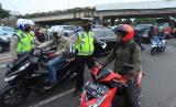 Polisi menindak pengendara yang melanggar rambu lalu lintas di jalan R.M Margono Djojohadikoesoemo, Tanah Abang, Jakarta, Selasa (9/8/2022). Hal itu dilakukan untuk meningkatkan keamanan dan kenyamanan para pengguna jalan serta meminimalkan potensi terjadinya kecelakaan yang dipicu pelanggaran aturan rambu lalu lintas. (FOTO : ANTARA/Reno Esnir )