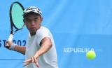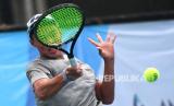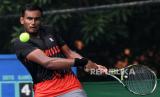 REPUBLIKA.CO.ID, JAKARTA -- Petenis putra Indonesia Nathan Anthony Barki berusaha mengembalikan bola ke arah petenis India Sesikumar Mukund babak 32 besar Amman Mineral International Tennis Championship 2022 di lapangan tenis Hotel Sultan, Jakarta, Selasa (9/8/2022).