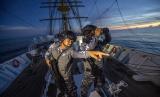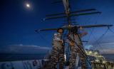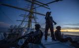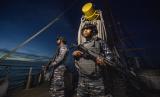 REPUBLIKA.CO.ID,TAWI-TAWI -- Dua prajurit KRI Bima Suci-945 berjaga di atas geladak KRI Bima Suci-945 saat melintasi perairan Tawi-tawi, Filipina, Senin (8/8/2022).