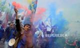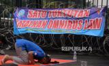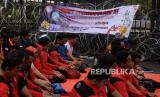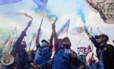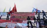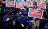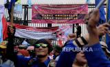REPUBLIKA.CO.ID, Sejunlah buruh mengikuti aksi unjuk rasa di depan gedung DPR, Jakarta, Rabu (10/8/2022). Dalam aksi tersebut mereka menuntut pemerintah untuk menghapus Omnibus law.