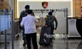 Personel Brimob meninggalkan gedung Bareskrim Mabes Polri usai menyerahkan koper yang diduga berisi barang bukti ke Gedung Bareskrim Mabes Polri, Jakarta, Rabu (10/8/2022). Koper tersebut diduga berisi barang bukti dalam kasus kematian Brigadir J setelah dilakukan penggeledahan di rumah mantan Kadiv Propam Polri, Irjen Ferdy Sambo di Jalan Saguling III, Kompleks Pertambangan, Duren Tiga, Jakarta selatan pada Selasa (9/8/2022) kemarin. (FOTO : Republika/Thoudy Badai)