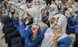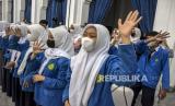 Sejumlah siswi mengikuti kegiatan gebyar minum tablet tambah darah (TTD) serentak di Gedung Sate, Jalan Diponegoro, Kota Bandung, Kamis (11/8/2022). Kegiatan yang digelar bertepatan dengan Hari Remaja Internasional tersebut bertujuan untuk mengejar target cakupan remaja putri yang mendapatkan TTD sesuai di Jawa Barat sebesar 52 persen, sekaligus upaya untuk menurunkan kasus anemia pada remaja putri dan pencegahan stunting. Republika/Abdan Syakura (FOTO : REPUBLIKA/ABDAN SYAKURA)