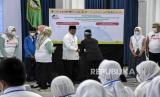 Wakil Gubernur Jawa Barat Uu Ruzhanul Ulum (keempat kanan) saat menghadiri kegiatan gebyar minum tablet tambah darah (TTD) serentak di Gedung Sate, Jalan Diponegoro, Kota Bandung, Kamis (11/8/2022). Kegiatan yang digelar bertepatan dengan Hari Remaja Internasional tersebut bertujuan untuk mengejar target cakupan remaja putri yang mendapatkan TTD sesuai di Jawa Barat sebesar 52 persen, sekaligus upaya untuk menurunkan kasus anemia pada remaja putri dan pencegahan stunting. Republika/Abdan Syakura (FOTO : REPUBLIKA/ABDAN SYAKURA)