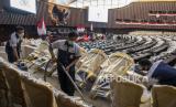 REPUBLIKA.CO.ID,JAKARTA -- Petugas mempersiapkan Gedung Nusantara menjelang sidang tahunan MPR, sidang bersama DPR- DPD, dan sidang paripurna DPR di Kompleks Parlemen, Jakarta, Kamis (11/8/2022).