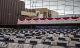 Petugas mempersiapkan Gedung Nusantara menjelang sidang tahunan MPR, sidang bersama DPR- DPD, dan sidang paripurna DPR di Kompleks Parlemen, Jakarta, Kamis (11/8/2022). Presiden Joko Widodo direncanakan akan hadir dan memberikan pidato dalam ketiga sidang tersebut. (FOTO : ANTARA/Muhammad Adimaja )