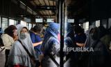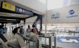 Sejumlah penumpang memasuki gerbang untuk menaiki bus Transjakarta di Halte Cakra Selaras Wahana (CSW), Kebayoran Baru, Jakarta, Kamis (11/8/2022). Gubernur DKI Jakarta Anies Baswedan menetapkan tarif integrasi untuk layanan transportasi umum massal yakni Transjakarta, MRT dan LRT dengan tarif maksimum dalam satu kali perjalanan sebesar Rp 10.000. (FOTO : Republika/Putra M. Akbar)