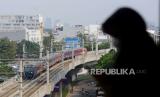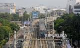 Rangkaian MRT melintas di kawasan Kebayoran Baru, Jakarta, Kamis (11/8/2022). Gubernur DKI Jakarta Anies Baswedan menetapkan tarif integrasi untuk layanan transportasi umum massal yakni Transjakarta, MRT dan LRT dengan tarif maksimum dalam satu kali perjalanan sebesar Rp 10.000. (FOTO : Republika/Putra M. Akbar)